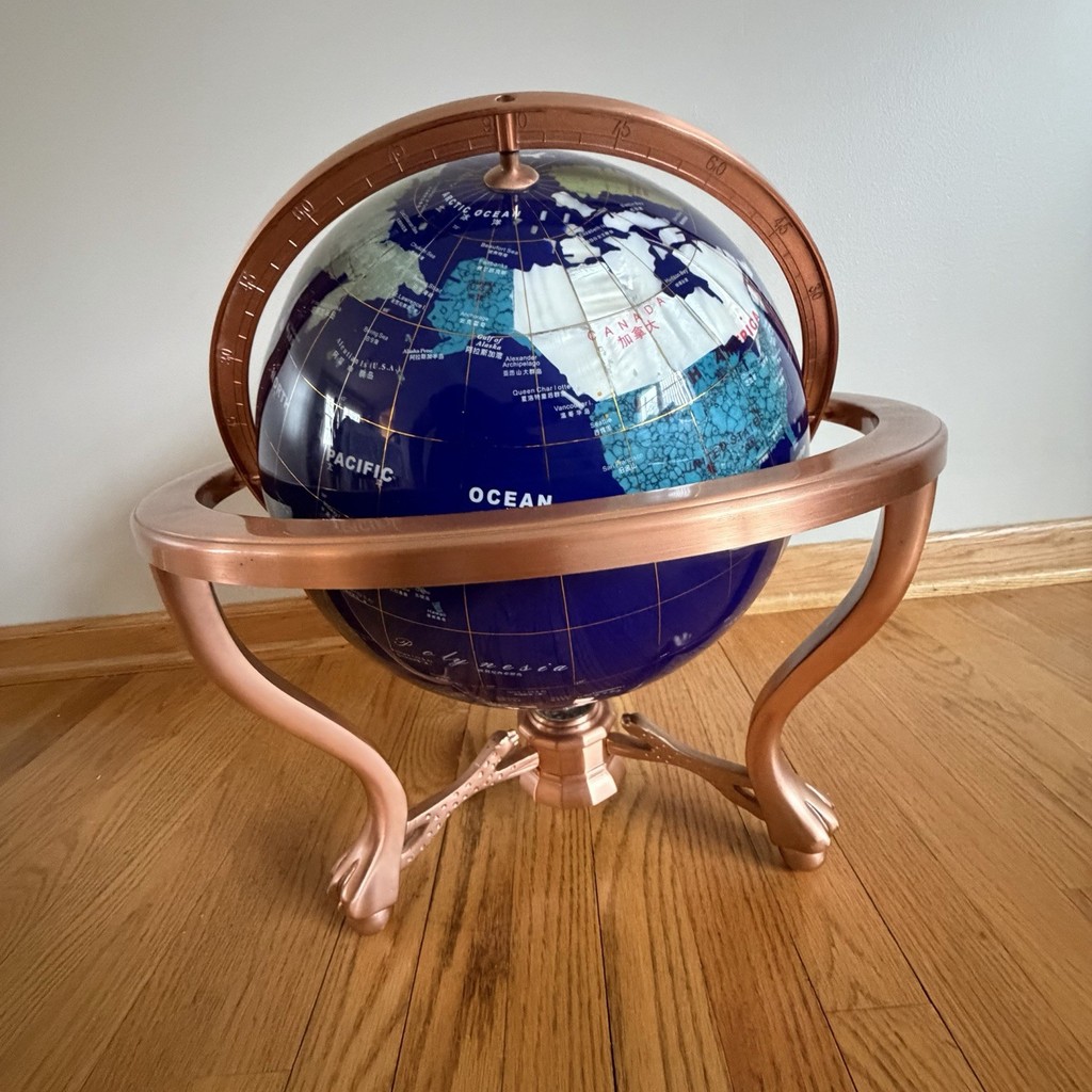 13 12 Blue Stone World Globe on 3 Leg Brass Stand With Compass