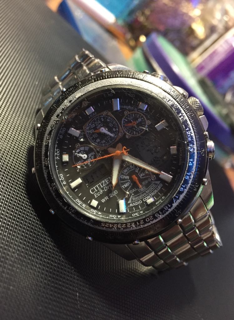Citizen Men Eco Drive Skyhawk A .Steel Pilot Watch Jy0020 64E Radio Control