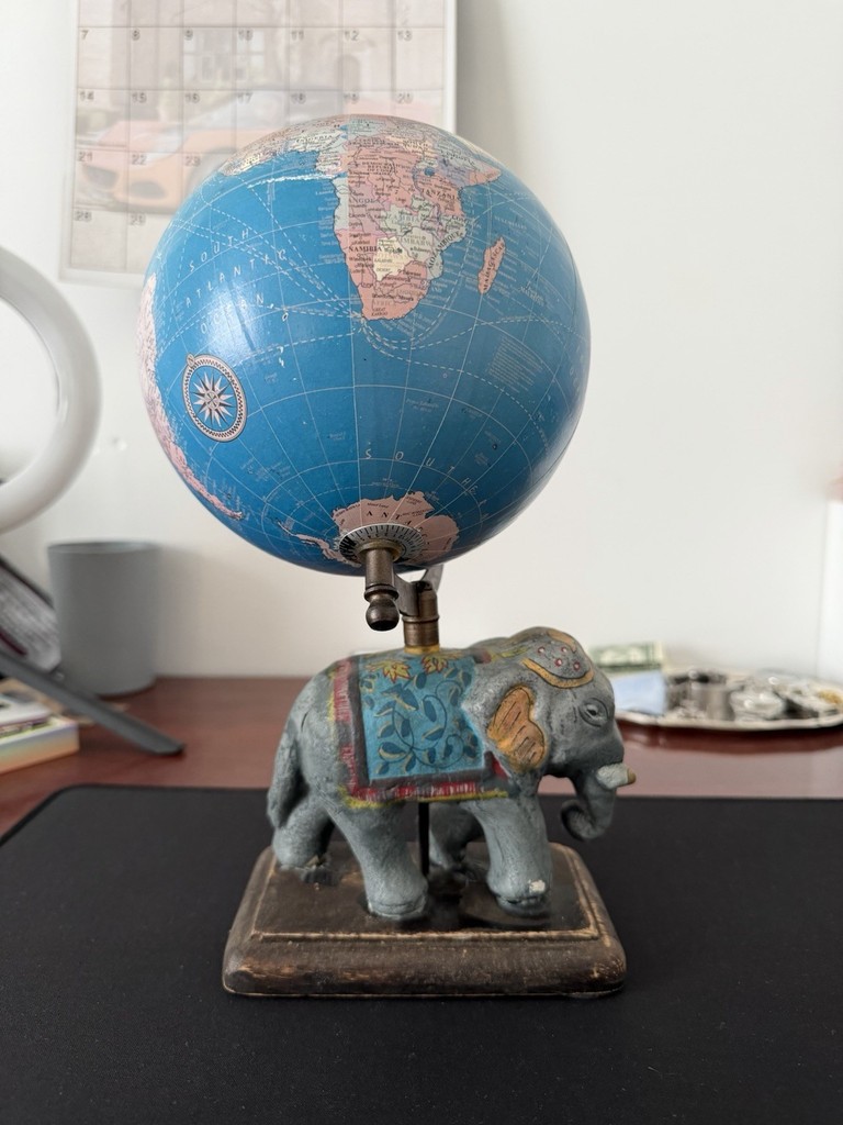 Dara Elephant Globe World Map Decor Figurine Wood Base Accent