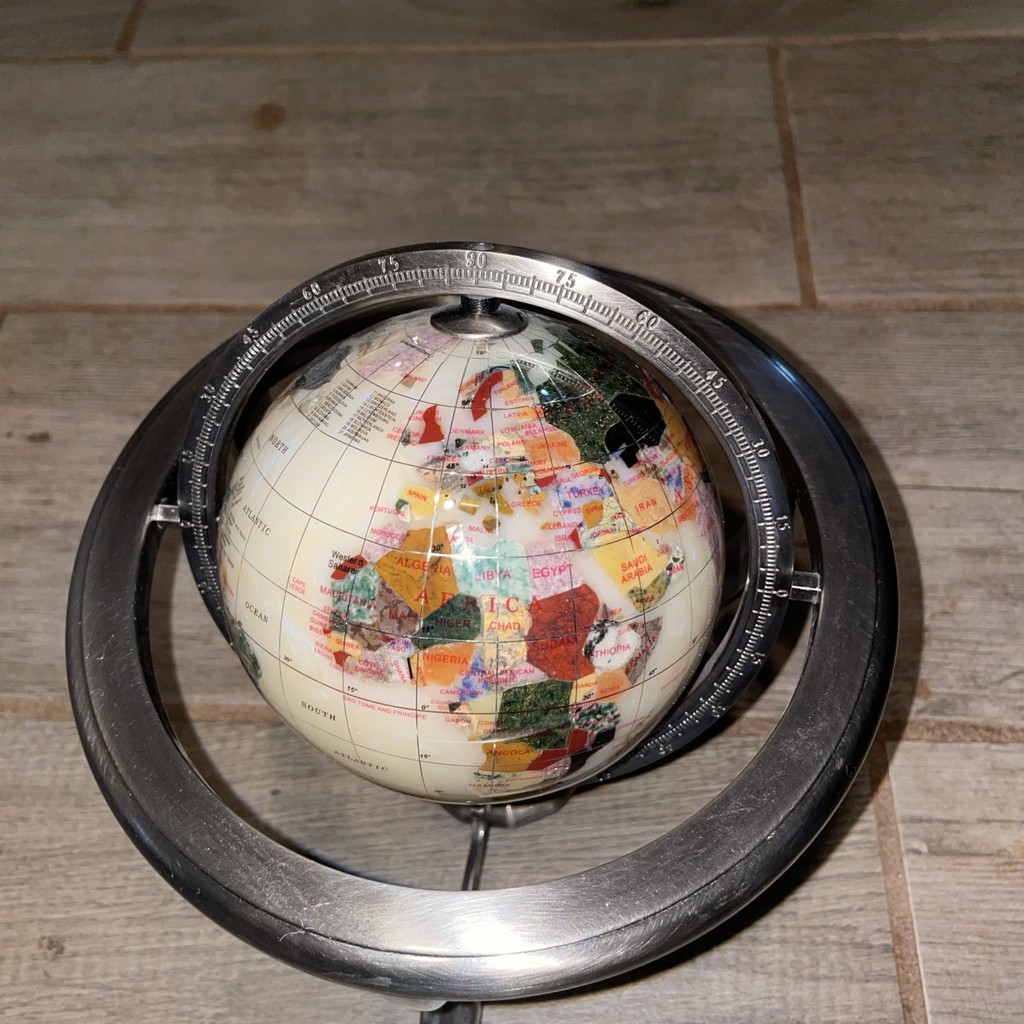 10 Tall Pearl Ocean Copper Zinc Alloy Table Stand Gem Gemstone World Globe Map