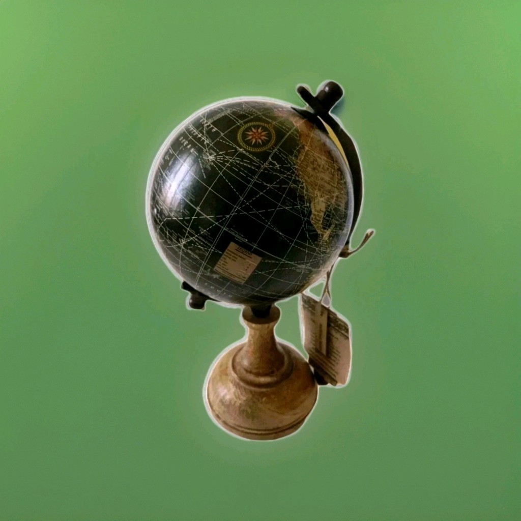 World Globe Map Round Decor Wood Base Table Top Rotating Black 9.5 6 New
