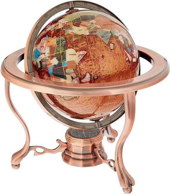 Vintage Inlaid Gemstone Globe World Map Semi Precious Stones Desktop Globe 6