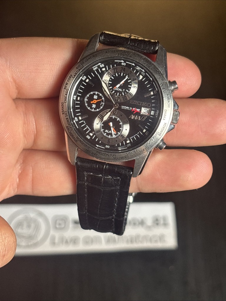 Seiko ANA World Time 5t82 0ah0 Chronograph Quartz Men Watch