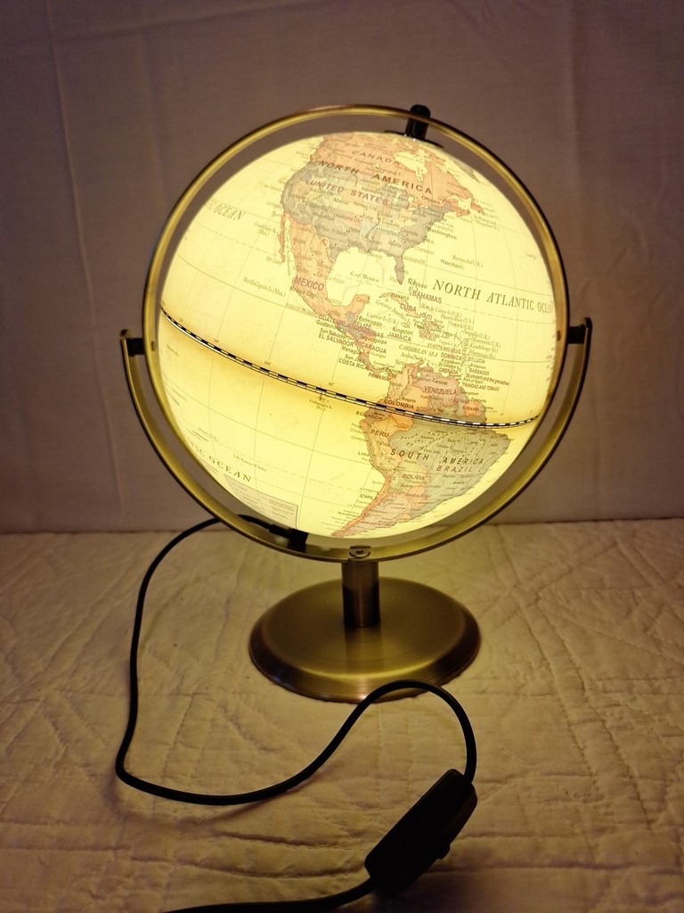 Vtg Silver Metal Chrome World Globe Map Rotating Heavy Desktop Decor 10 7