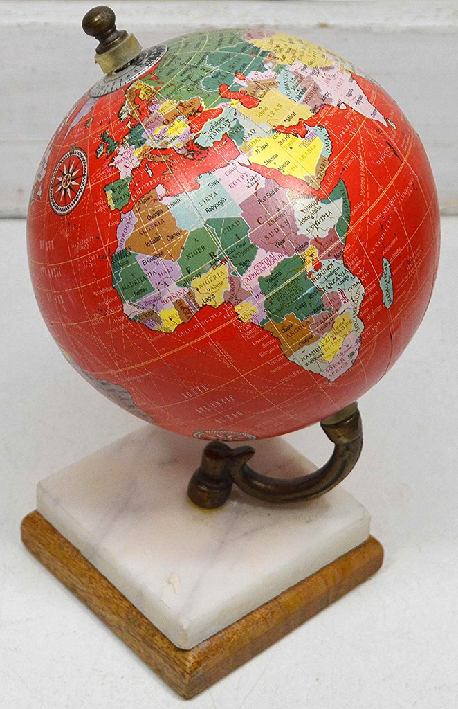 Red Ocean World Globe Map Atlas Georaphy Rotates Marble Base 8 Tall