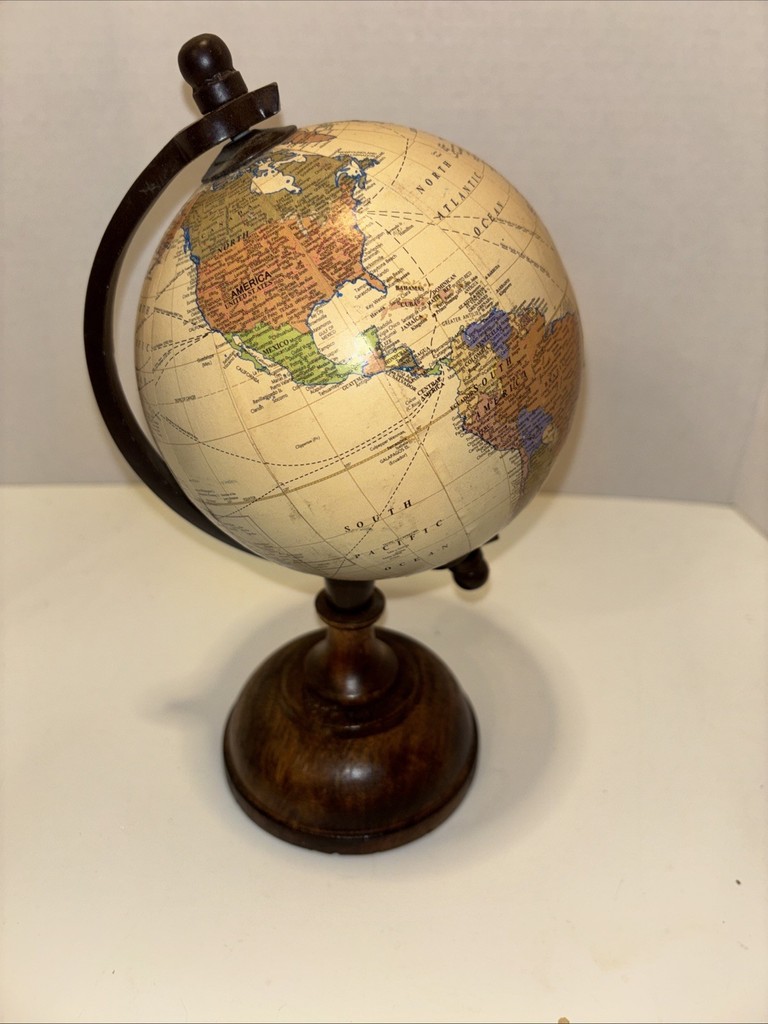 New Table Top World Globe Map Rotating Round Decor Wood Base Black 9.5 6