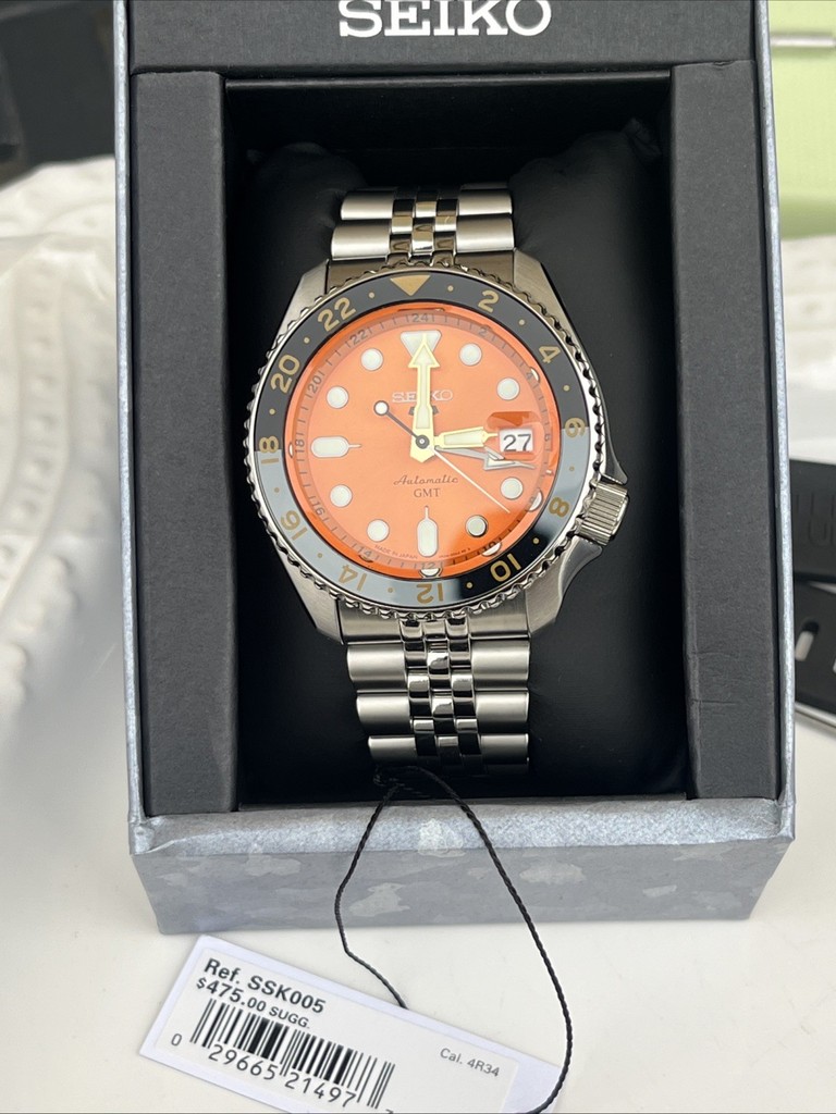 Unworn Seiko 5 SKX GMT Series Automatic Steel Bracelet Watch Ssk005j Extra